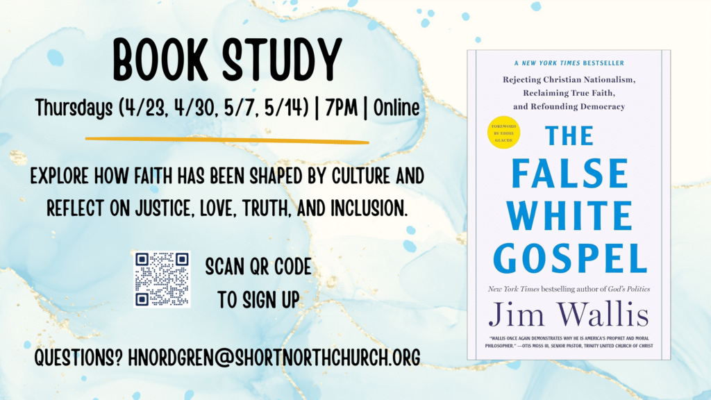 Explore how faith has been shaped by culture and reflect on justice, love, truth, and inclusion. SCAN QR Code to sign up to join the discussion. Questions? hnordgren@shortnorthchurch.org