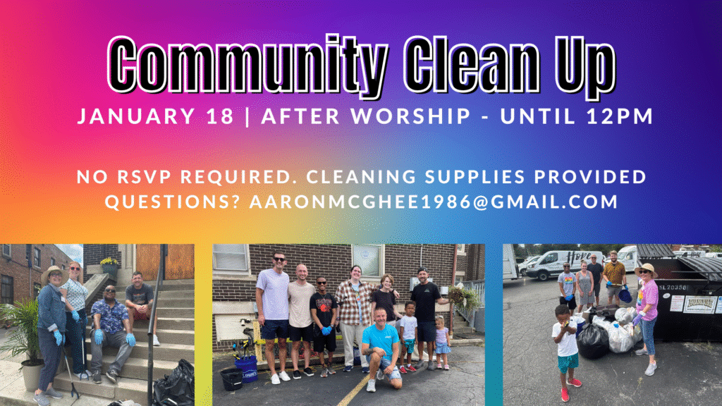 Help care for our neighborhood and church grounds by joining a post-worship cleanup. All ages are welcome and cleaning supplies will be provided. Questions? aaronmcghee1986@gmail.com