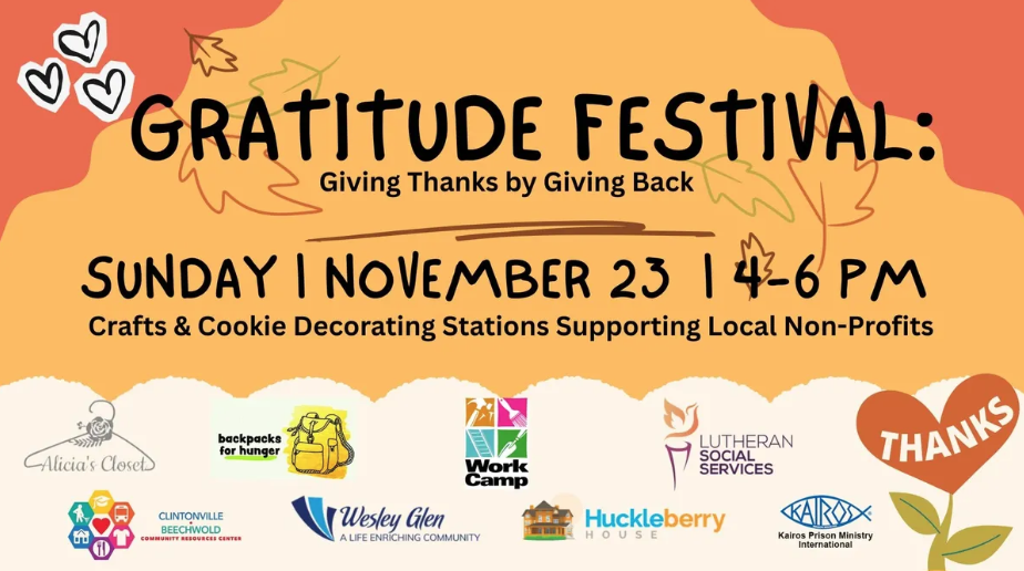 Gratitude Festival Date November 23, 2025 Time 4:00 pm – 6:00 pm Address 48 E North broadway Directions Venue North Broadway UMC Category Community, Fellowship, Holidays, Missions, Ohio State Campus, Small Group, SNC Kids, SNC Youth Group, Young Adults Gratitude Festival | Sunday, November 23 | 4–6PM | North Broadway UMC An afternoon of spirited giving! Support local nonprofits through cookie decorating, letter writing, and more acts of kindness.