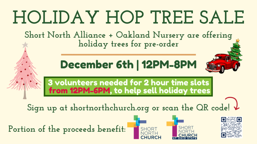 The Short North Alliance has partnered with Oakland Nursery to offer Holiday Tree Sales, available for pre-order or day-of purchase. A portion of the proceeds benefit the Short North Alliance, the Short North Church, and the Short North Church at Ohio State.
