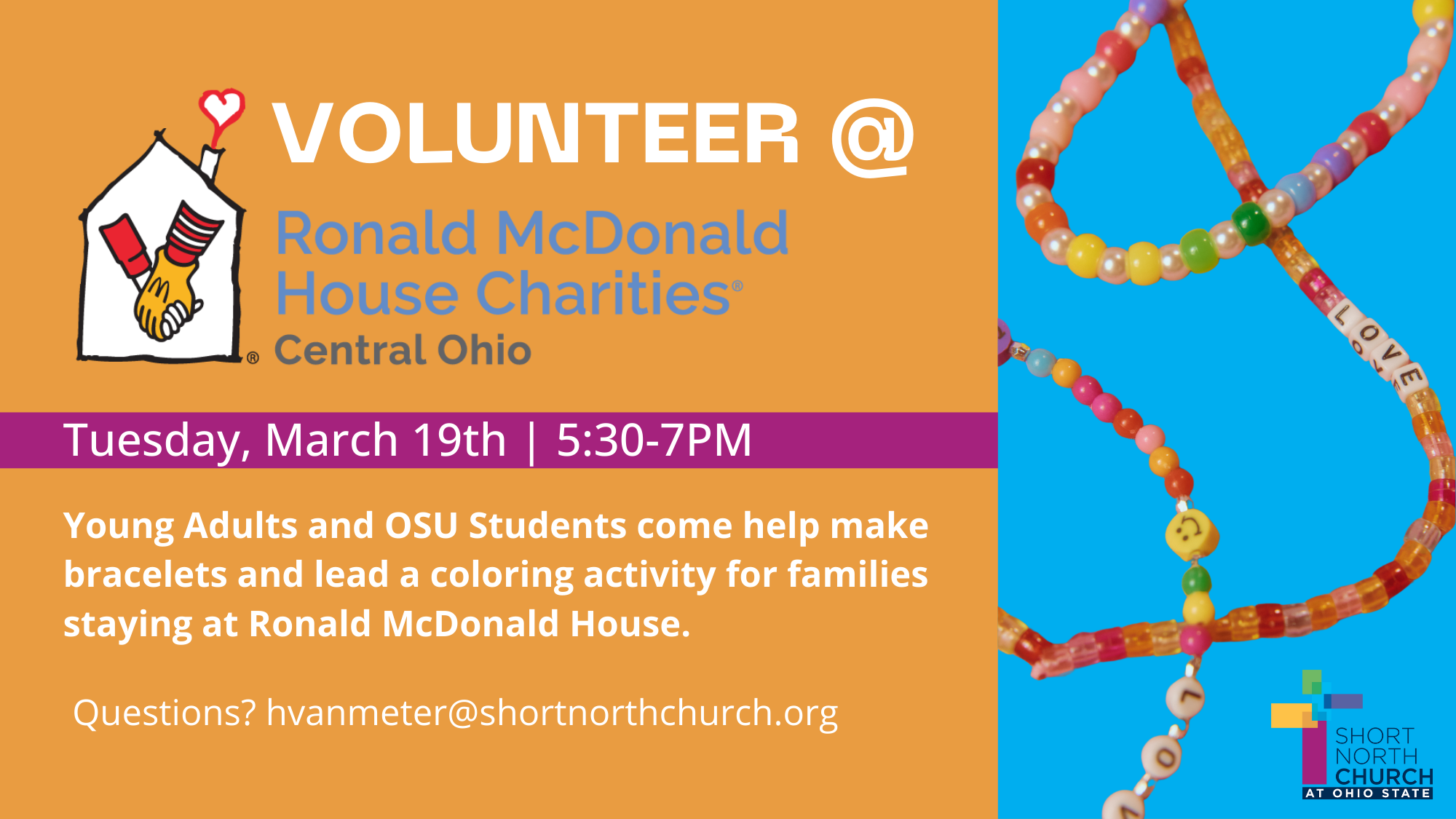 Ronald McDonald House. Questions? hvanmeter@shortnorthchurch.org
