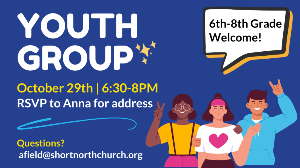 Youth Group | Wednesday, October 29 | 6:30–8PM | RSVP to Anna for address