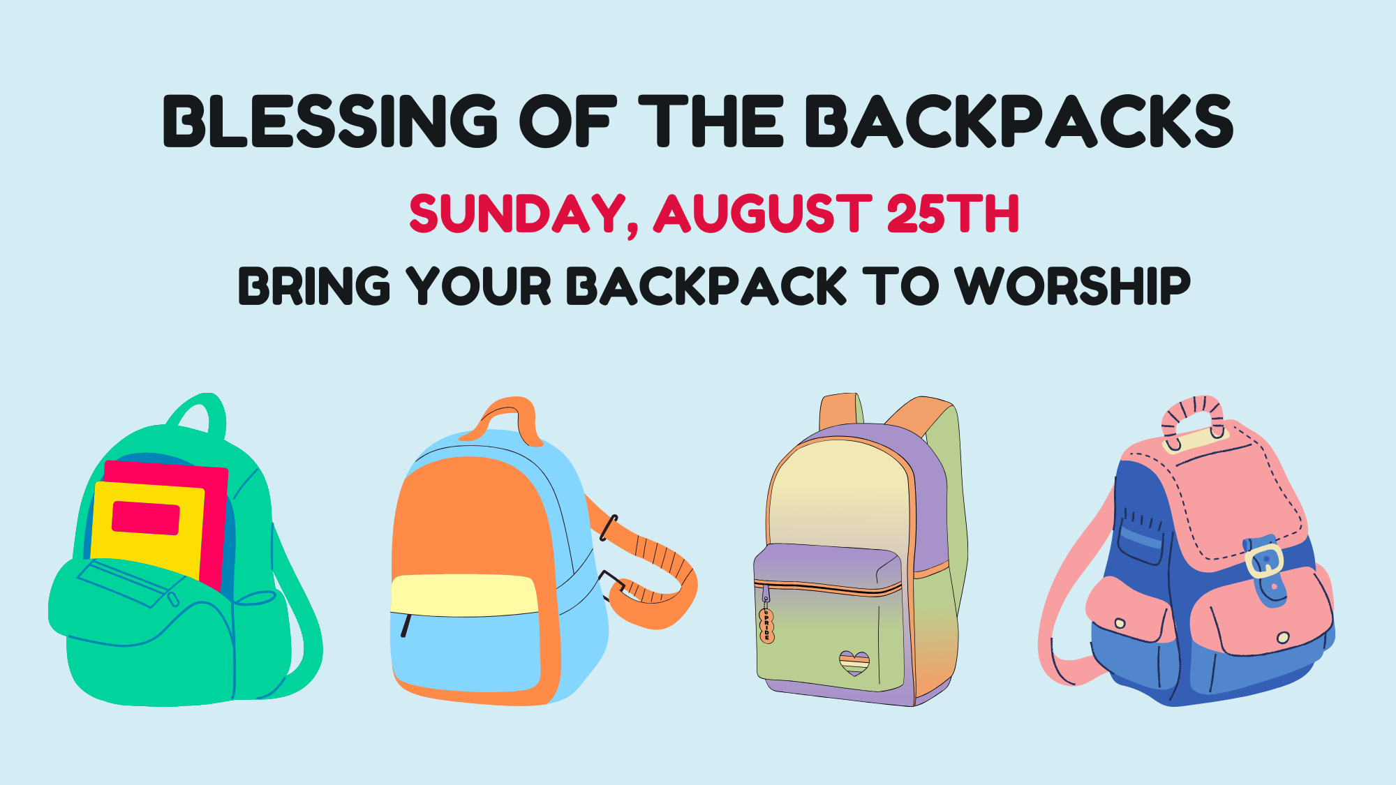 Blessing of the Backpacks | Sunday, August 25th | During 10AM Worship + Song | SNC