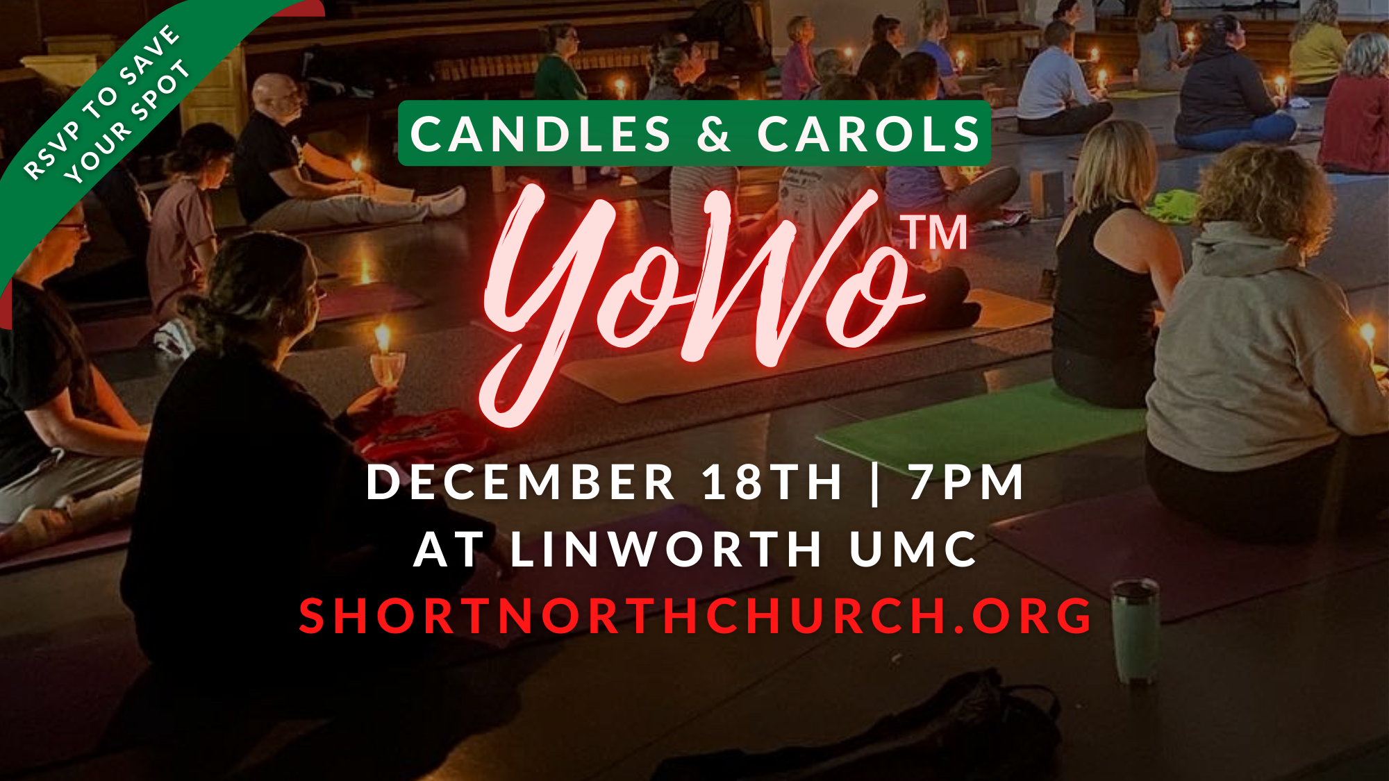 Join us for Candles & Carols YoWo™ (Yoga+Worship) Wednesday, December 18th, 7PM at Linworth UMC. This is Christmas Eve yoga style with movement, live music, candles and prayer.