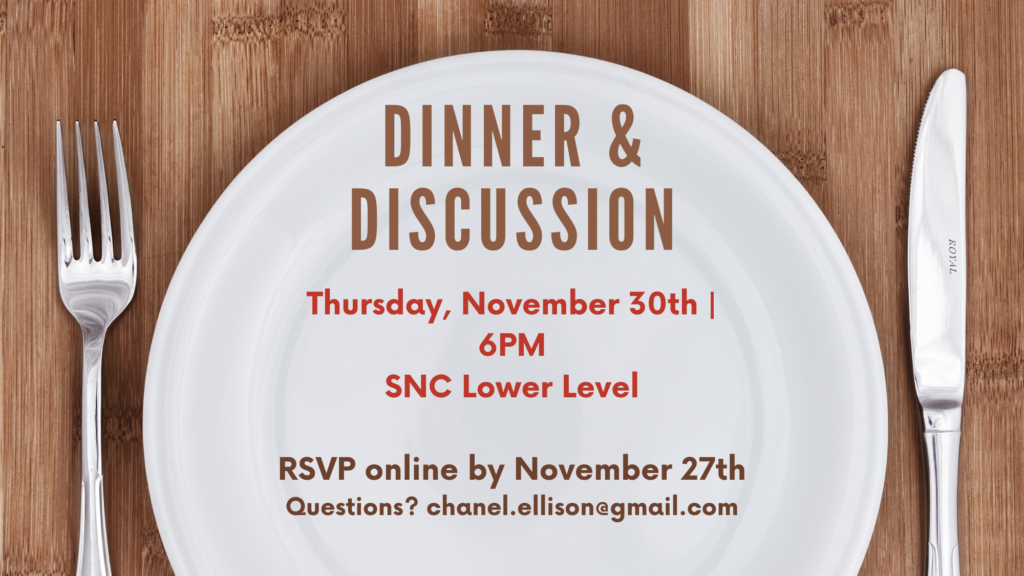 Dinner & Discussion Thursday, November 30th | 6PM | SNC Lower Level