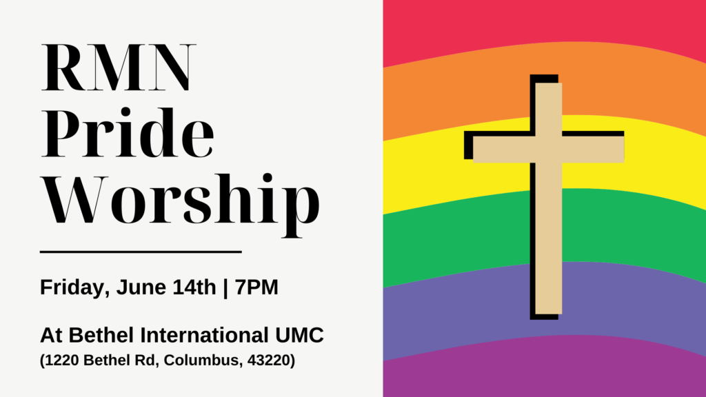 RMN Pride Worship Date June 14, 2024 Time 7:00 pm – 8:00 pm Address 1220 Bethel Rd. Directions Venue Bethel International UMC Category Community, Pride, Services RMN Pride Worship RMN Pride Worship | Friday, June 14th | 7PM | Bethel International UMC (1220 Bethel Rd.) No RSVP required, come celebrate pride! SCAN QR Code for more information.