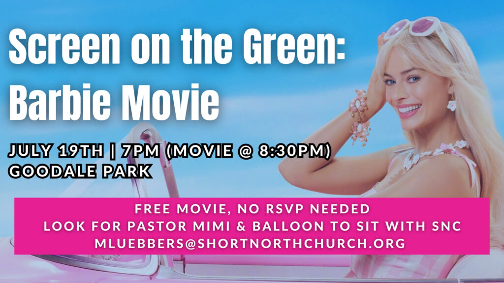 Gather with SNC and community friends to watch the Barbie Movie at Goodale Park on Friday, July 19th. Food truck opens at 7PM and movie starts at 8:30PM. No RSVP needed, to sit with SNC look for Pastor Mimi and her balloon.